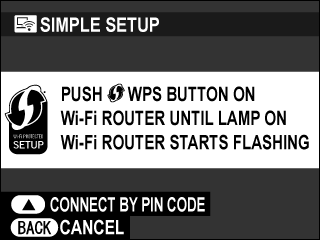 You also have the option of connecting using a PIN. Display the camera PIN by pressing the focus stick (focus lever) up and enter it on the wireless LAN router.