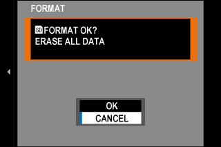 A confirmation dialog will be displayed. To format the memory card, highlight OK and press MENU/OK.