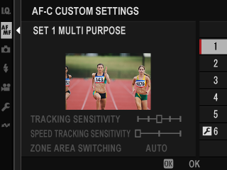 Select AF-C CUSTOM SETTINGS > SET 6 CUSTOM.