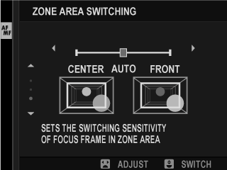 | AUTO | The camera locks focus on the subject at the center of the zone and then switches focus areas as necessary to track it. |