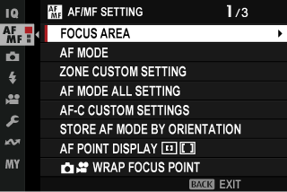 Any changes made using this item also apply in movie mode (axFAF RANGE LIMITER (Movie Recording)).