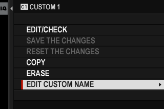 Highlight EDIT CUSTOM NAME and press MENU/OK.