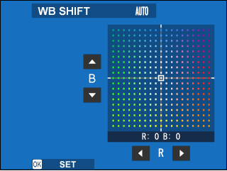 - Press the focus stick up or down to adjust colors on the blue–yellow axis.