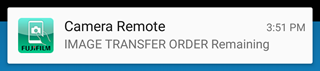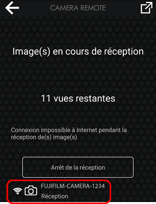 L'appli affiche un message pop-up une fois que vous avez sélectionné les images sur l'appareil photo et que le transfert automatique a commencé.