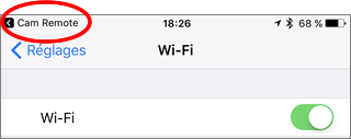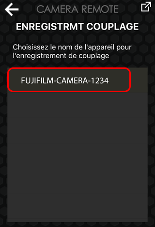 Pour revenir à l'appli FUJIFILM Camera Remote, touchez Cam Remote en haut à gauche de l'écran.