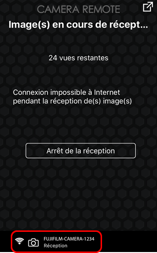 Les étapes suivantes sont réalisées alors que l'appli FUJIFILM Camera Remote s'exécute en arrière-plan.