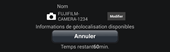 Les données de localisation datant de plus de deux heures ne seront pas transmises à l'appareil photo.