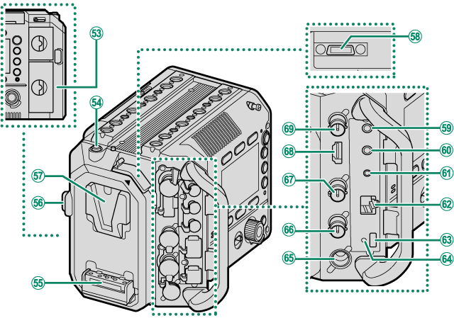 • アウトサイドのロックスイッチではアウトサイドのボタンやダイヤル、正面のRECボタンとGRABボタンをロックできます。
