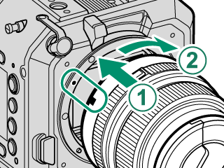 レンズを斜めに押し付けたり、レンズをPLマウントアダプターに取り付けたりしたまま、レンズを回さないでください。信号接点が破損するおそれがあります。