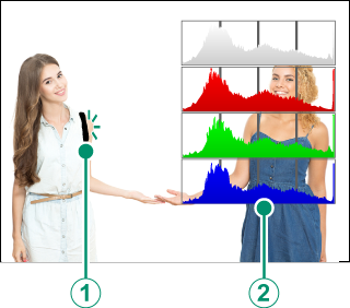 ヒストグラムとは明るさの分布をグラフ(横軸:明るさ/縦軸:ピクセル数)に表したものです。被写体によってグラフ形状は異なります。