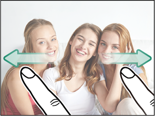 画面上に2本の指を置き、指の間隔を狭めるように動かし、画像を縮小表示できます。