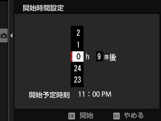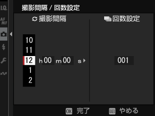 設定した時間ごとに自動撮影するインターバルタイマー撮影の撮影間隔と撮影回数を設定できます。