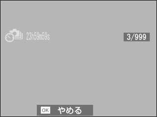 インターバルタイマー撮影中にPLAYボタンを押すと、撮影した画像を確認できます。もう一度PLAYボタンを押すか、撮影の時間になると、撮影画面に戻ります。