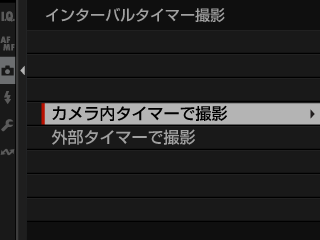 撮影メニューからA撮影設定 > インターバルタイマー撮影を選び、MENU/OKボタンを押します。