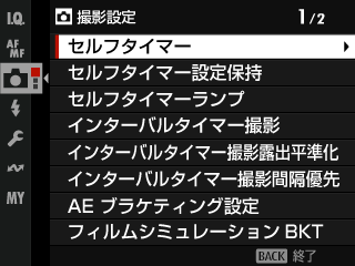 ONにすると、電源をオフにしてもセルフタイマーの設定が維持されます。