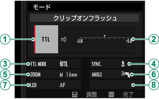 別売のクリップオンフラッシュを使用するときに表示されます。