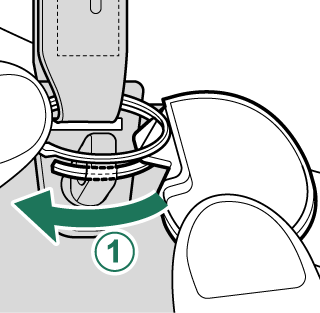 1. ストラップリング取り付け補助具の図の部分を使ってストラップリングの切りこみを広げ(A)、ストラップリング取り付け補助具を回してしっかり押し込みます(B)。