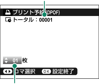 C再生メニュー > プリント予約(DPOF)を選びます。