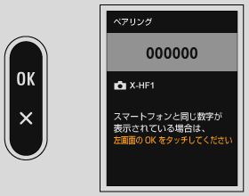 3. スマートフォンのアプリケーションを起動してペアリングを開始すると、カメラとスマートフォンに数字が表示されます。数字が一致していることを確認して、カメラのtをタップし、スマートフォンでペアリングを許可します。