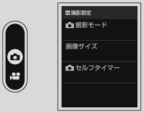 撮影画面で液晶モニターを上にスワイプすると、撮影設定の一覧表示画面でセルフタイマーを使用しているかどうかを確認できます(a撮影設定の一覧表示)。