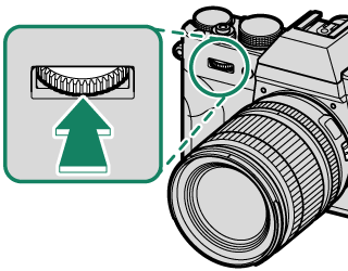 撮影時にフロントコマンドダイヤルの中央を押すごとに、D操作ボタン・ダイヤル設定 > コマンドダイヤル設定で設定した機能を切り替えることができます。