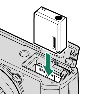 バッテリーの向きを間違えるとカメラが破損するおそれがあります。正しい向きで挿入してください。