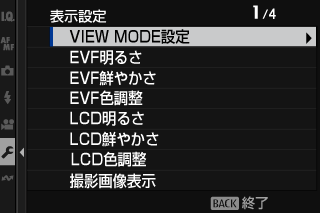 アイセンサー、EVF(ファインダー)、LCD(液晶モニター)の設定を切り替えます(aEVFとLCDの切り替え)。