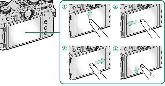 タッチファンクション(T-Fn1/T-Fn2/T-Fn3/T-Fn4)機能は、タッチパネル(液晶モニター)のフリック動作で機能を呼び出すことができます。
