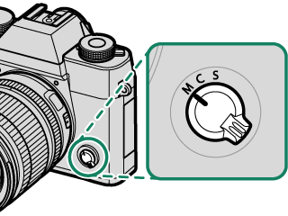 レンズ側でM(マニュアルフォーカス)を設定できる交換レンズをご使用の場合は、フォーカスモード切換レバーをSまたはCに設定していてもM(マニュアルフォーカス)で撮影できます。