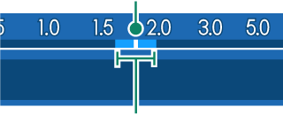 白い線はピントの中心値を、青いバーは被写界深度を示します。距離指標の単位は、D表示設定 > 距離指標の単位でメートルとフィートを切り替えられます。