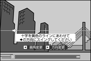 カメラを動かす速度が速すぎたり、遅すぎたりしたときは、撮影が中断される場合があります。設定した方向と異なる方向にカメラを動かしたときも撮影が中断されます。