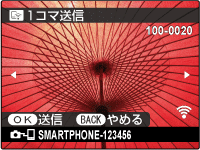 通信先のスマートフォンの名前を確認して、カメラのMENU/OKボタンを押します。
