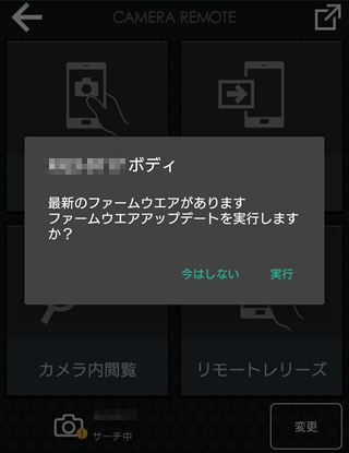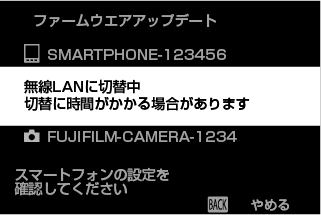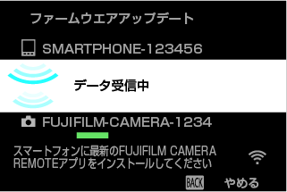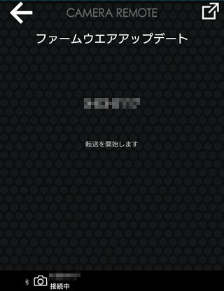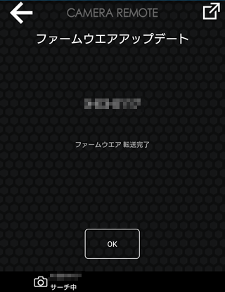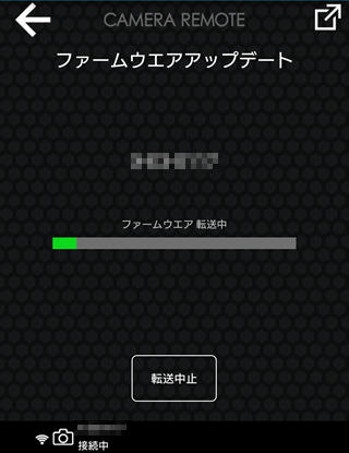 データ転送が完了するとスマートフォンとカメラの無線接続が切断され、カメラ側で自動的にアップデートが始まります。