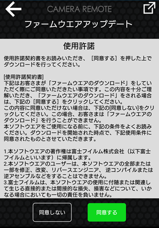 ダウンロードをタッチし、表示された使用許諾契約画面の内容を確認します。