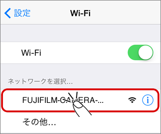 iPhone/iPad/iPod Touchをご使用の場合は、設定でWi-Fiをオンにしてからカメラと接続します。