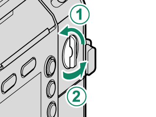 请勿在摄影机开启时打开电池盒盖。否则可能会损坏文件或存储卡。