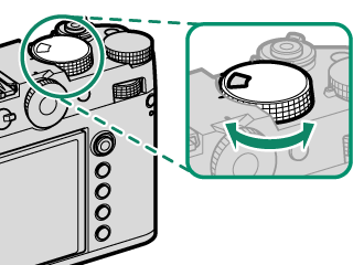 旋转快门速度拨盘/感光度拨盘可调整快门速度。提起并旋转拨盘可调整感光度。