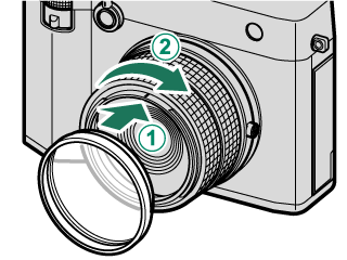 在镜头遮光罩装在转接环上的情况下,可将整个转接环连同遮光罩从相机上拆下或安装到相机上。