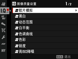 选项内容与静态摄影的选项相同,但必须分别调整设置(a胶片模拟(静态摄影))。