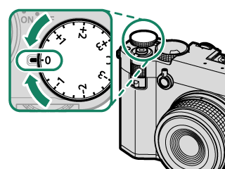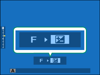 曝光补偿仍可通过半按快门按钮在取景器或 LCD 显示屏中预览。在摄像模式下,F-Log 录制期间或将 F动态范围 选择为 W200% 或 X400% 时,取景画面可能无法准确反映曝光补偿的效果。通过选择模式 M 并直接调节曝光可获取精确预览效果。