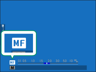 - 使用 DISP/BACK 按钮可显示手动对焦指示。