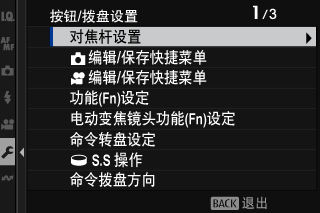 | 后部命令转盘 | 将 S.S.(程序偏移)、光圈环设置(A)、曝光补偿、ISO、胶片模拟 或 无 指定给后指令拨盘。 |