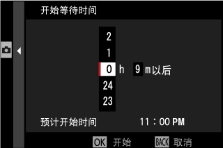 4. 使用对焦棒选择开始时间并按下 MENU/OK。拍摄将自动开始。