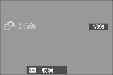 若要查看目前为止拍摄的照片,请在间隔定时拍摄期间按下 PLAY 按钮。若要返回至拍摄显示,请再次按下 PLAY 按钮或等待直至下一间隔开始。