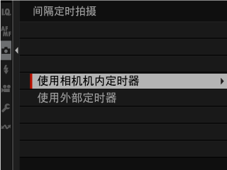 如果正在使用遥控快门装置自带的定时器,请选择 使用外部定时器。您将返回至拍摄显示,在此可以使用遥控快门装置开始间隔定时拍摄。