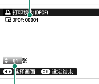 1. 选择 C播放菜单 > 打印预约(DPOF)