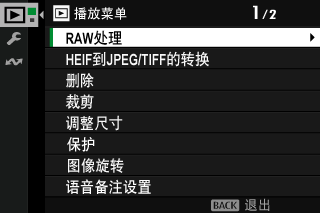 在回放过程中显示 RAW 照片时按下 Q 按钮也可显示 RAW 处理选项。