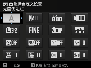 * 如果 x选择自定义设置 当前未选择设置库,则将显示拍摄模式。
