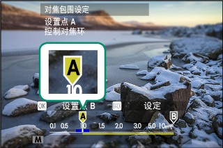所选对焦距离(B)和对焦范围(AB)会出现在对焦距离指示上。