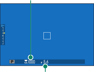 若拍摄对象位于相机测光范围之外,快门速度和光圈将显示为 “–––”。